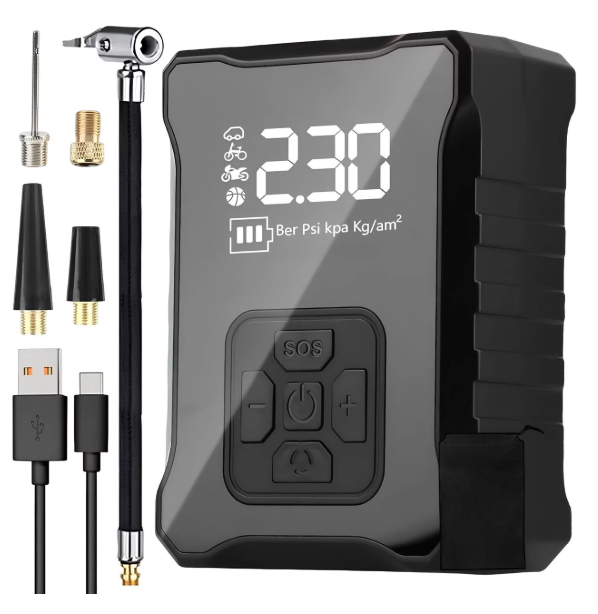 Компресор працює автономно, а повного заряду вистачає кілька повних подкачек.Автостоп при досягненні потрібного тиску . Просто задай потрібне значення - пристрій сам зупиниться ,у комплекті 4 насадки, легко поміщається у багажник, бардачок чи рюкзак. Зручність у поїздках. Працює від акумулятора – ти не прив'язаний до розетки або прикурювача.